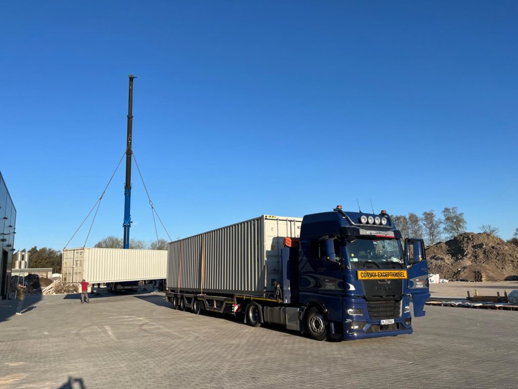 Im März 2025 wurde eine neue Produktionshalle in Hövelhof gefunden. Anfang April erfolgte die Anlieferung der vier Container, mit denen nun die Vorkonfektionierung des modularen Gebäudes beginnt – ein wichtiger Schritt in Richtung Realisierung.